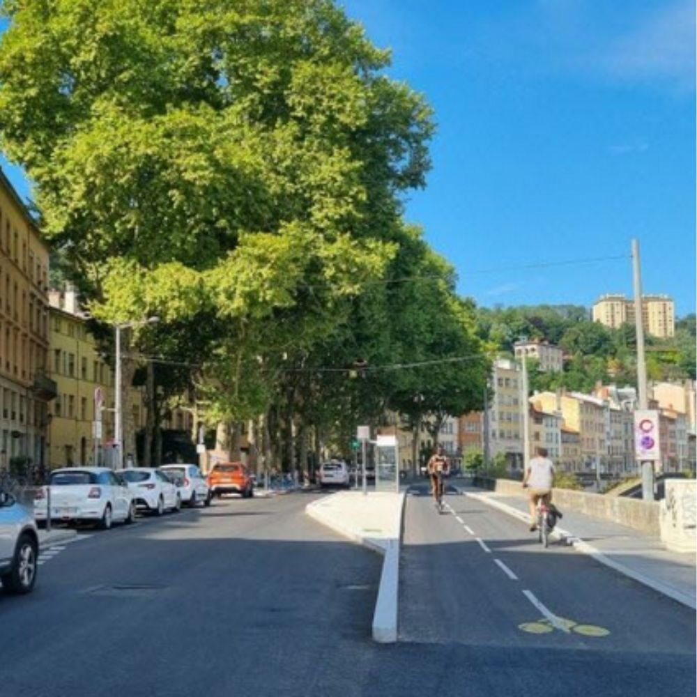 Une continuité cycliste aménagée qui permet aux cyclistes de parcourir 3,3 km en toute sécurité de Perrache (2e arrondissement) au pont Koenig (9e arrondissement) !
