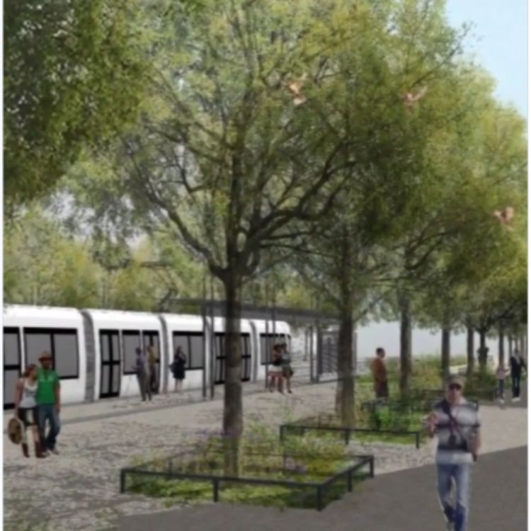 Le quartier continue de se végétaliser, et la déambulation piétonne sera plus confortable et plus sécurisée avec un arrêt de tramway entièrement ouvert à l’ouest !