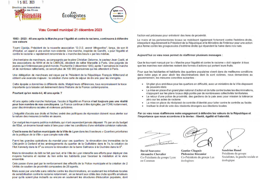 40 ans après la Marche pour l’égalité et contre le racisme, ce Conseil a été l’occasion pour la majorité de rappeler son attachement à ces valeurs, via un vœu qui a été adopté.