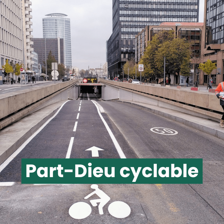 La Voie Lyonnaise 2 poursuit son développement notamment à la Part-Dieu avec un fait insolite : elle va passer dans le tunnel Vivier-Merle ! Une piste cyclable séparée permettra dans quelques semaines de traverser la gare en toute sécurité et sans perdre une seconde avec les très nombreux feux et flux aux abords de la gare. La portion entre le tunnel (rue Paul Bert) à l’avenue Félix Faure vient de débuter et on pourra donc bientôt relier le Transbordeur à Vénissieux !